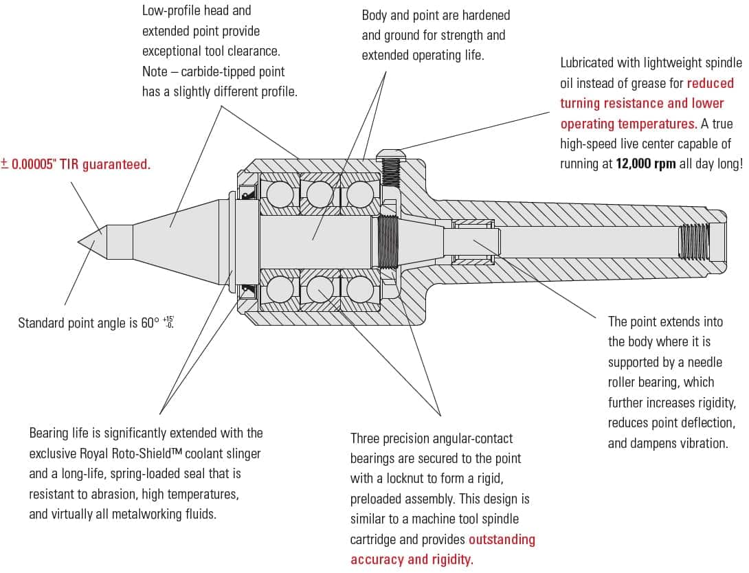 Royal High-Speed Precision Live Centers (Carbide-Tipped)