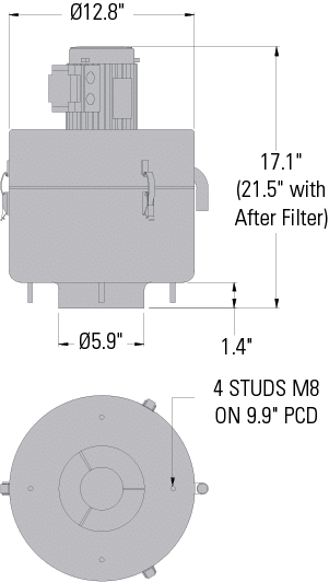 - Large 6" dia. intake results in a low intake velocity, reducing the likelihood that chips and large droplets will be drawn into the unit.